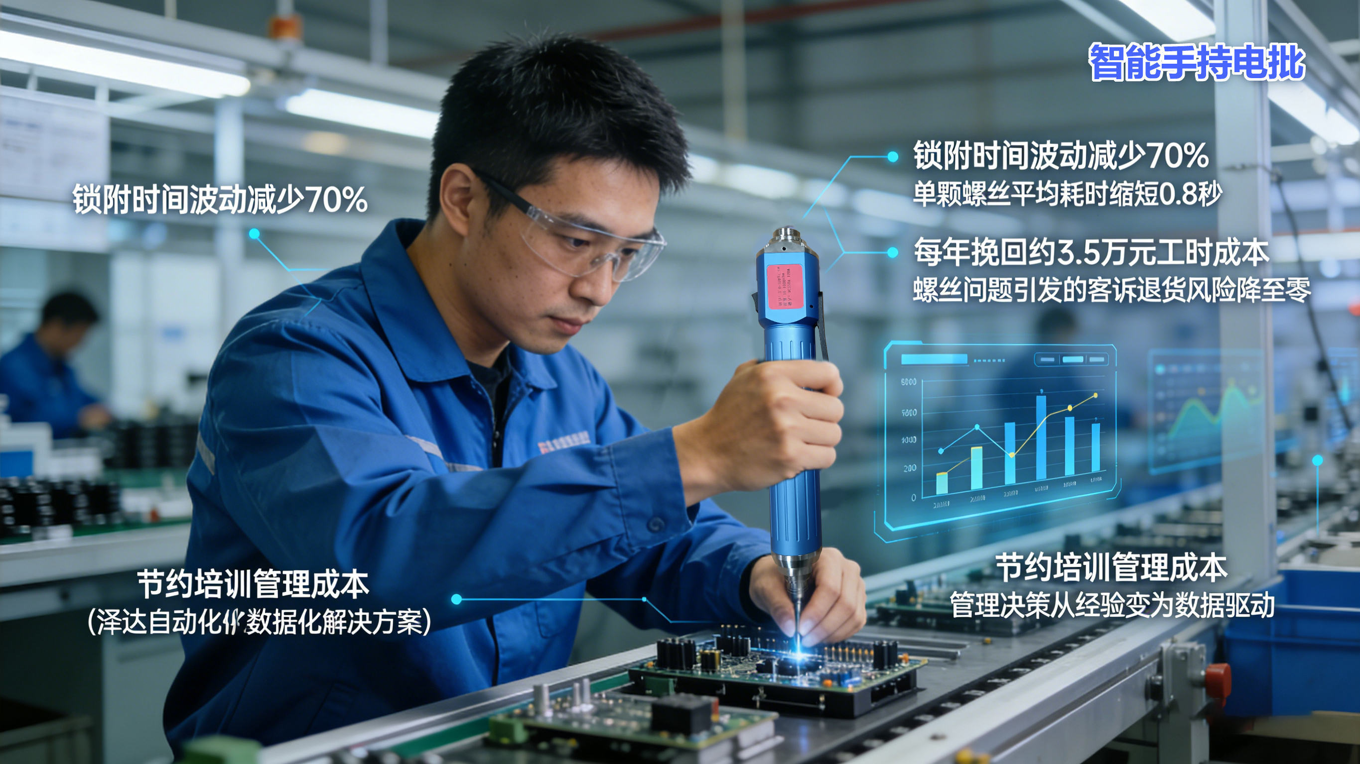 變化隨即發生:鎖附時間波動減少70%,單顆螺絲平均耗時縮短0.8秒。僅效率提升一項,每年即可為該瓶頸工位挽回約3.5萬元的工時成本。